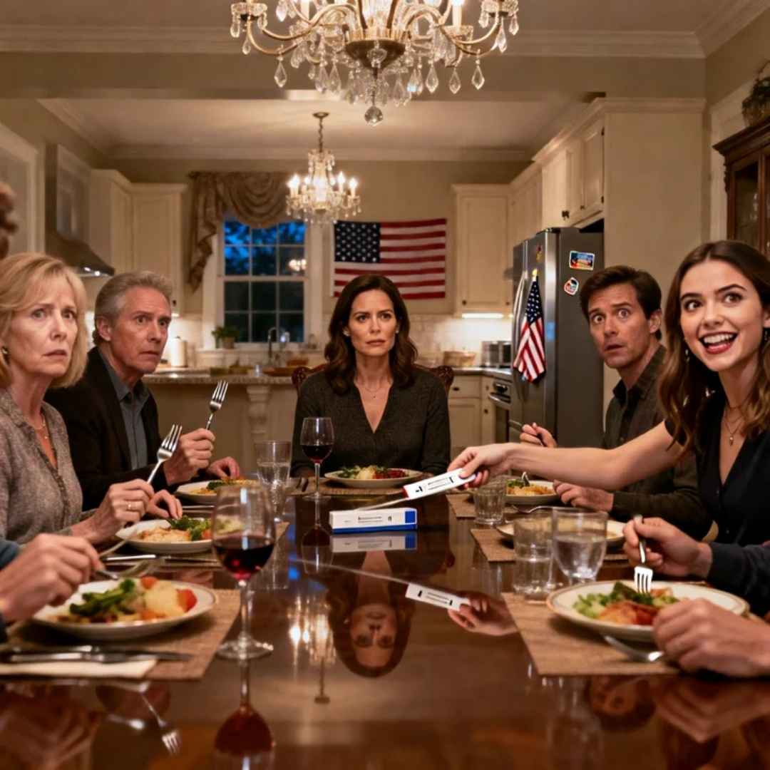 The DNA kit hit the table like a loaded weapon—white box, sealed plastic, sterile instructions—so out of place beside the candles and cheap grocery-store cake that it made the whole room go still.