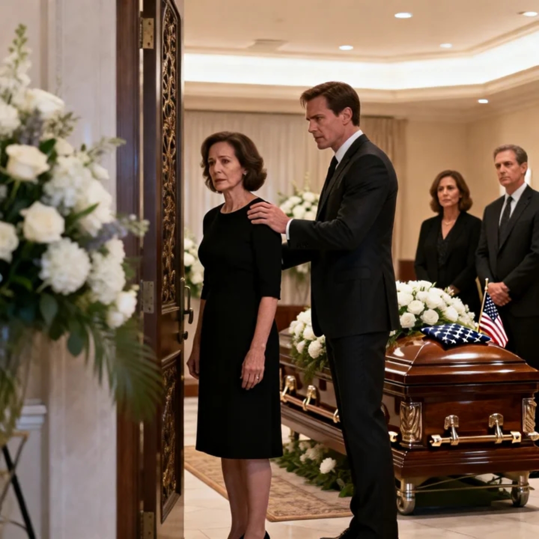 The first thing I saw was the wreath—white lilies arranged like a crown—hanging on the funeral home’s carved mahogany doors, as if grief itself had been curated, priced, and delivered on schedule.