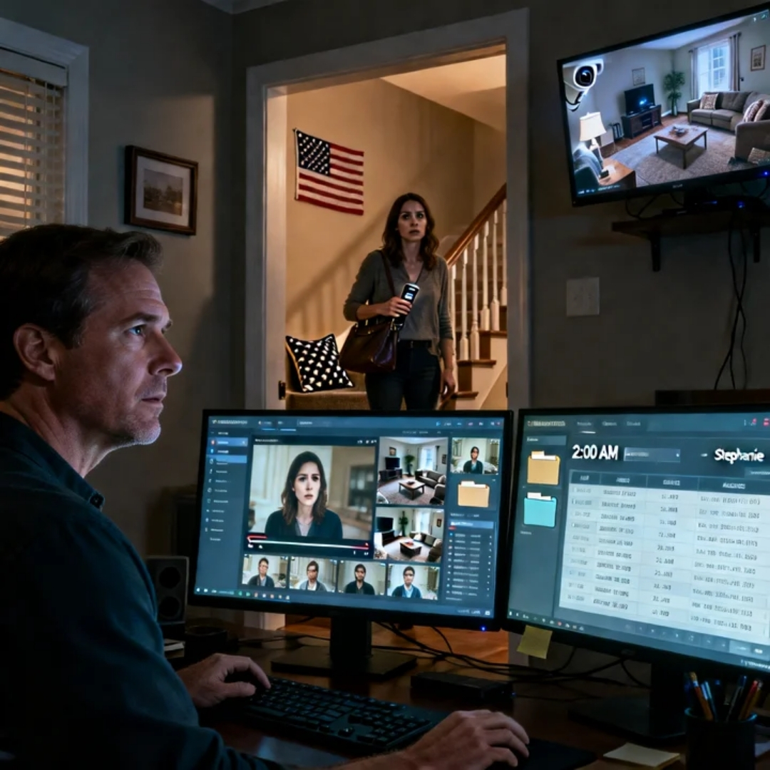 In the living room camera view, Stephanie moved around downstairs with a casual grace, but every few minutes she glanced toward where she thought the camera was mounted—only she was looking at the wrong spot. The camera wasn’t obvious. Richie had hidden it behind a decorative plant, angled perfectly to capture the room without screaming “surveillance.”