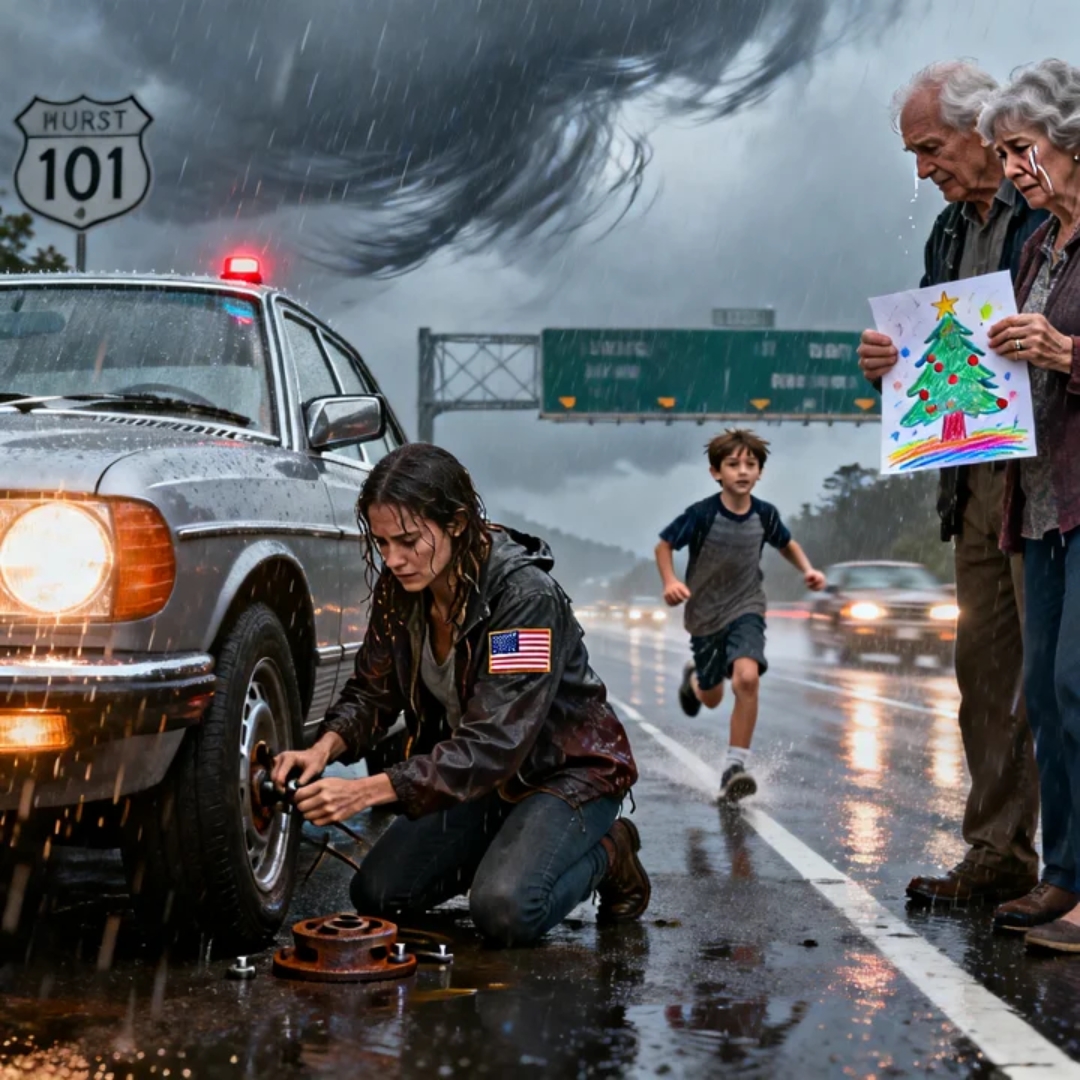 Christmas Day in California isn’t supposed to look like the end of the world. But that afternoon, it did. The sky hung low and heavy like wet concrete. Wind slammed into the side of my car hard enough to make the steering wheel tremble in my hands. Rain came sideways, a relentless, icy sheet that blurred the lane markers and turned every tail light ahead into a smeared red comet.