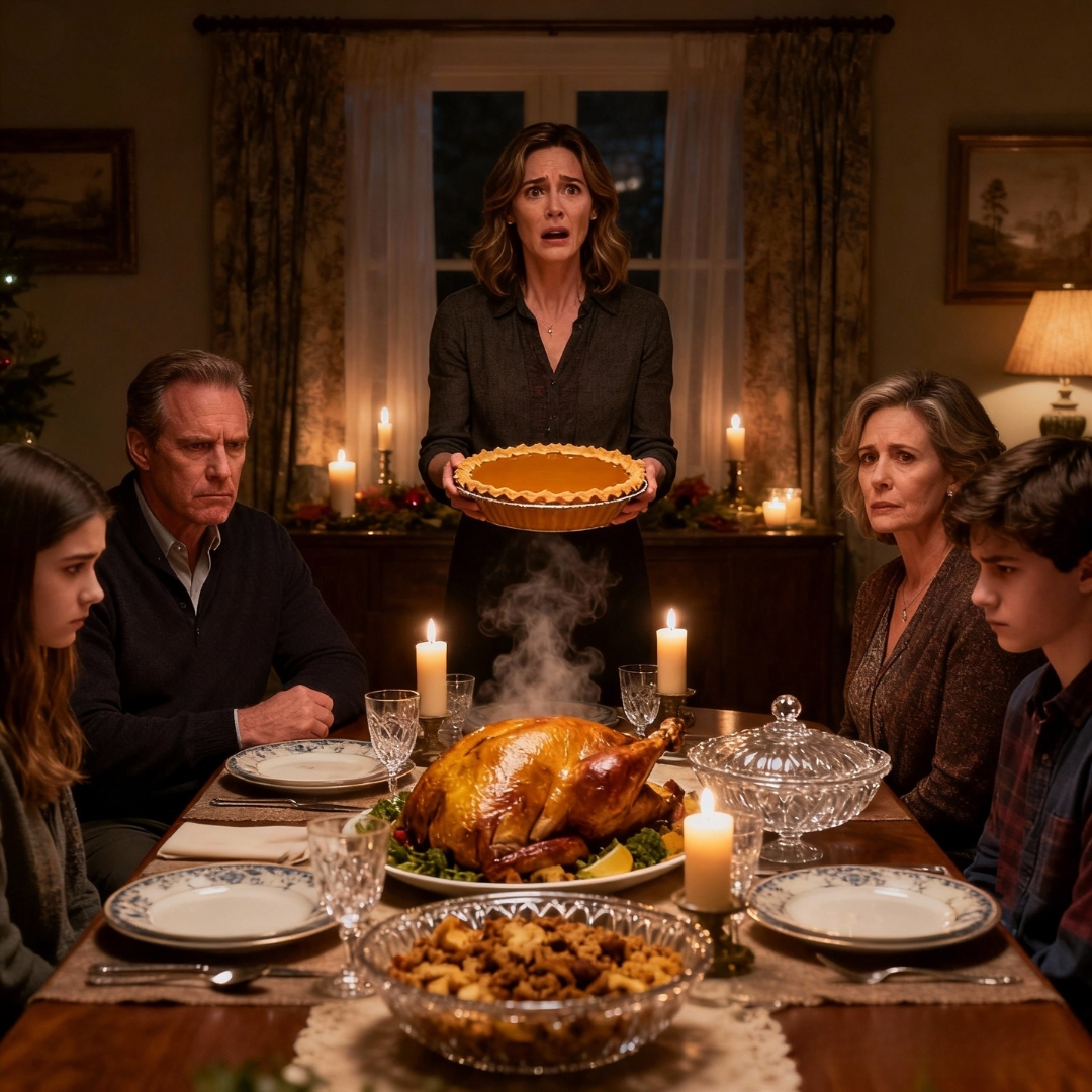 She didn’t nod. She didn’t shake her head. She just picked up her napkin and pressed it to her mouth like she felt sick. Her eyes slid right past me to the window, where the neighbor’s inflatable turkey bobbed cheerfully in the breeze.