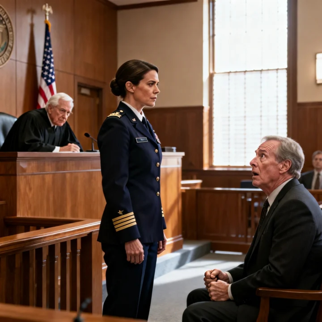 Inside, the hallway buzzed with low conversation. Lawyers shuffled papers. Families whispered. When I took a seat near the back, I felt eyes on me—not hostile, just curious. A woman in uniform always draws attention in places like that. People fill the blanks with whatever story they need.