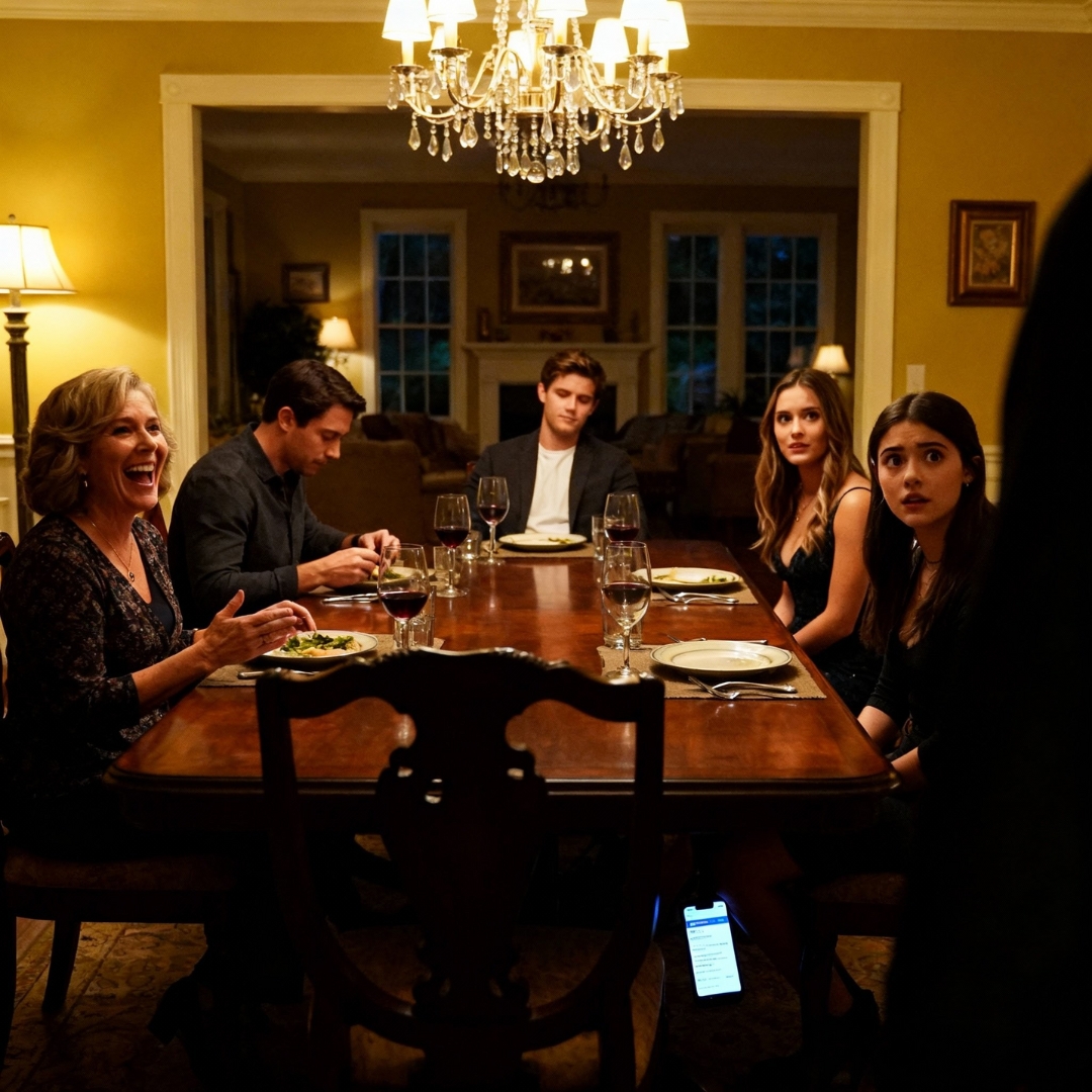 Chloe—the fiancée, the new addition from out of state, the one my parents were still “sussing out” as they liked to say—froze with her phone in her hand. The device hovered just below the edge of the polished oak table, screen glowing like its own little spotlight.