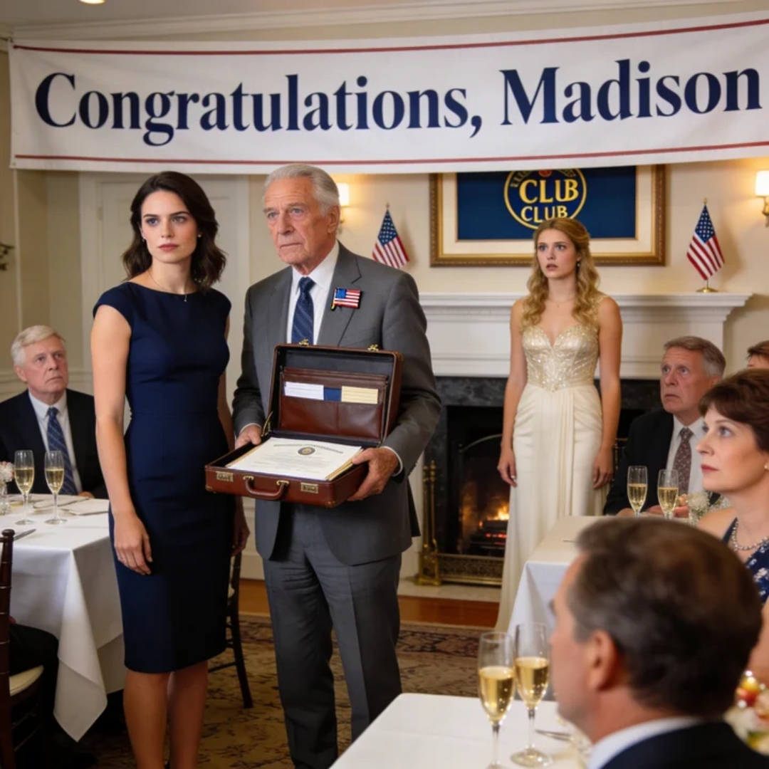 She stood in the doorway of the private dining room while twenty-five people—her people, her blood—laughed and clinked glasses beneath a banner that read CONGRATULATIONS, MADISON as if the universe itself had signed a card.