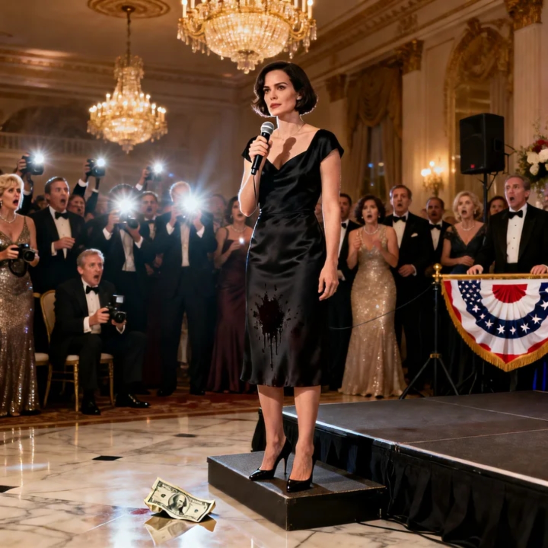 And then Serena Vale—draped in designer red, dripping in diamonds that didn’t belong to her—bent down, scooped a crisp bill from her clutch, and tossed it at my feet like she was feeding an animal.