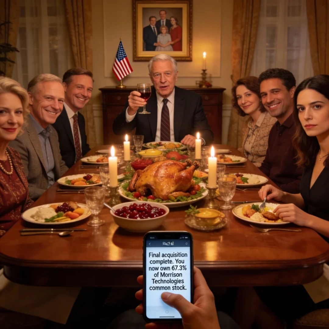 And that person was sitting at the head of the mahogany table, holding court like Thanksgiving was just another quarterly briefing.
