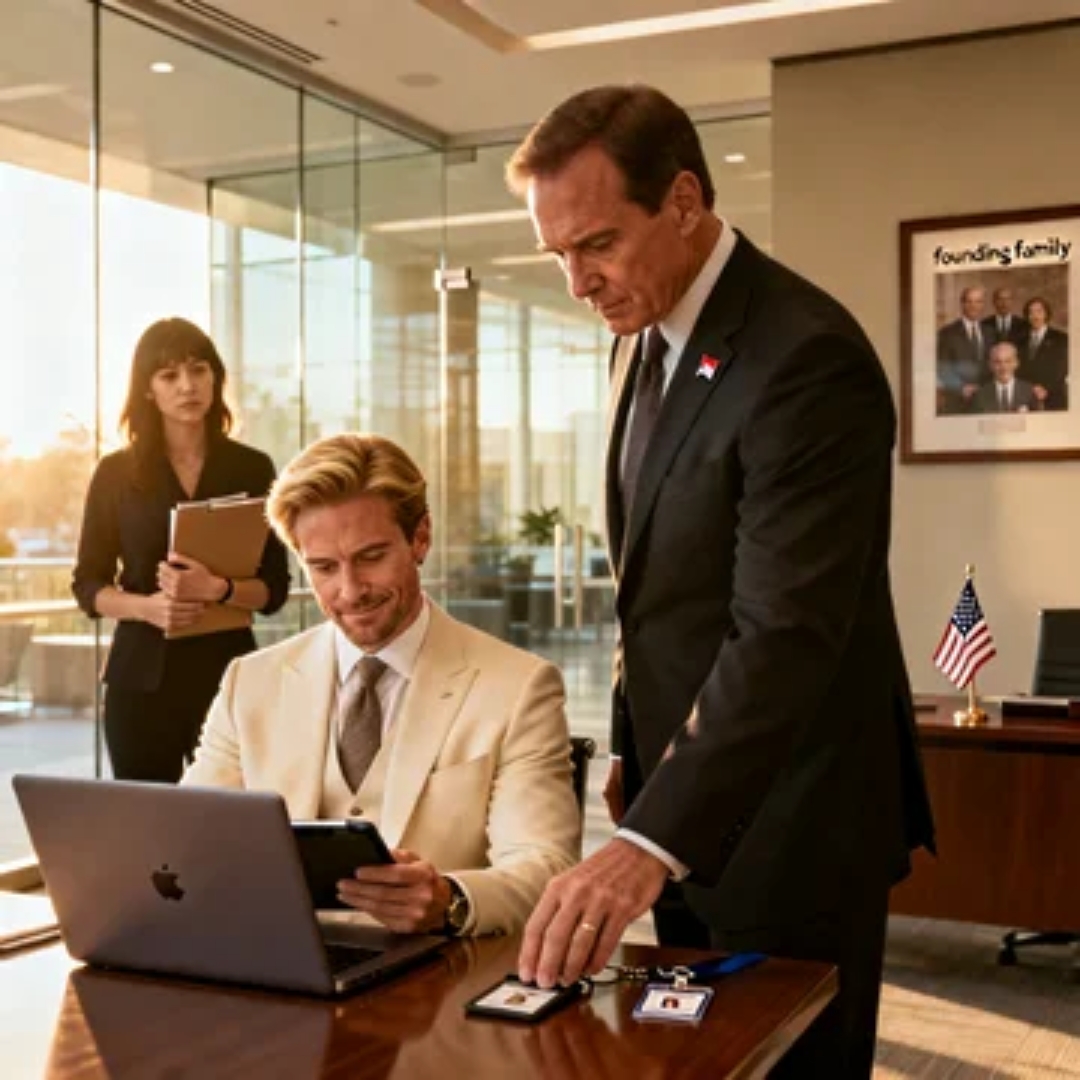 Day one. Hour one. That was his first move as TechFlow Industries’ shiny new Chief Strategy Officer—handed the title like a gift card and a pat on the head by his father, Ryan Walsh, founder and public face of a software empire that loved telling the world it was built on “innovation” and “vision” and “family values.”
