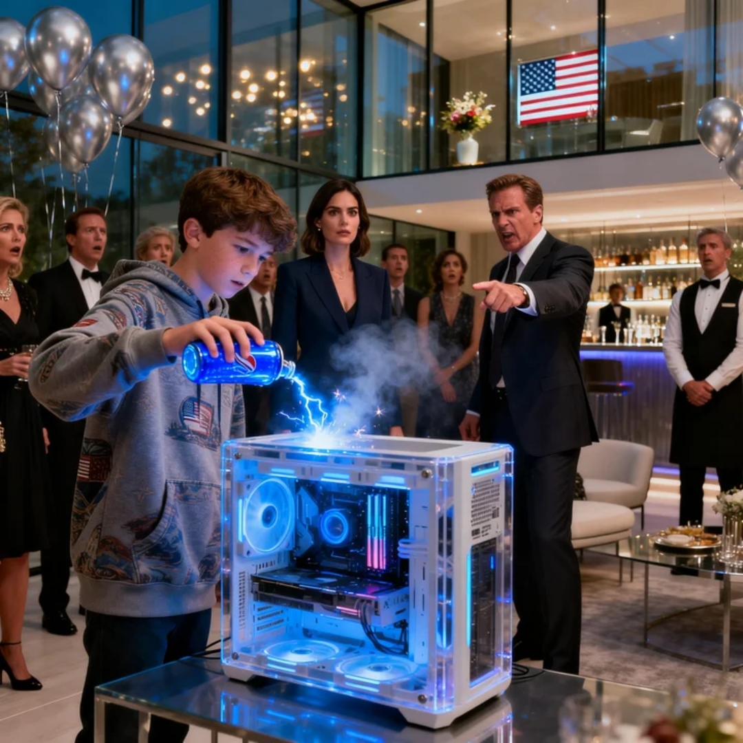 Jackson, my thirteen-year-old nephew, still held the upside-down can in his hand. Neon-blue energy drink dripped from the rim, from his fingers, from the vented top of the custom gaming PC I had spent three exhausting weeks building for him. He did not look shocked. He did not look guilty.