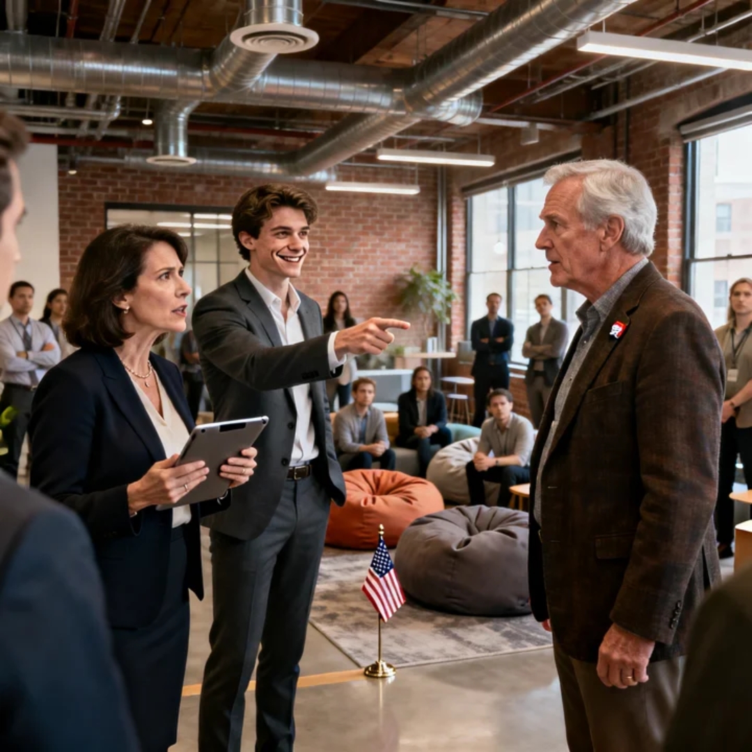 “It’s about culture,” he pressed, stepping into the center like he owned the air. “If you can’t connect with leadership, how can you trust leadership? It feels… insubordinate.”