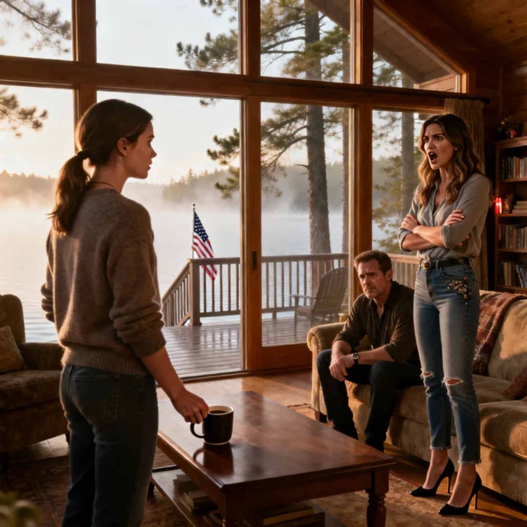 Mom had decorated it simply: soft couches, knitted throws, family photos in wooden frames, books stacked on every surface like a gentle chaos. The scent was familiar—cedar, old paper, faint woodsmoke from last weekend’s fire. Comfort. History.