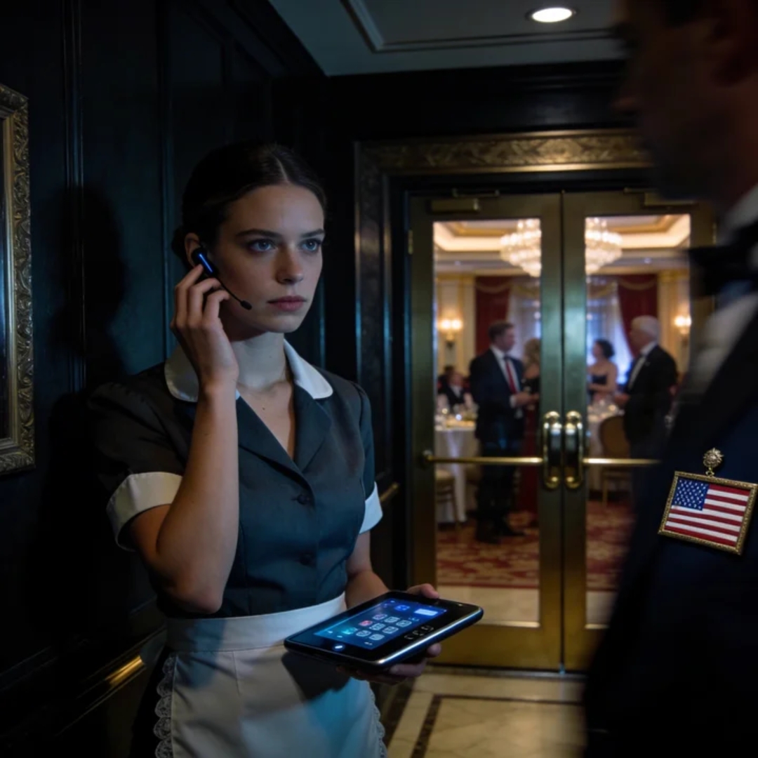 I stood alone in the service pantry in a scratchy black maid’s dress, one hand still resting on the biometric panel I had built into the wall three years earlier, and smiled at the camera.
