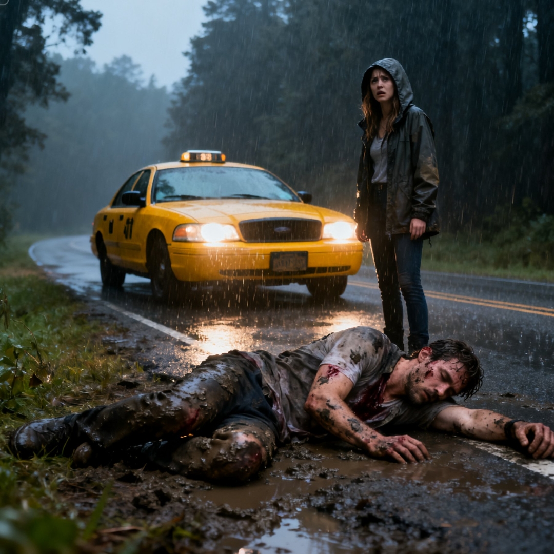 A figure stumbled out of the woods, collapsing toward the shoulder. Mud. Torn clothes. Blood—dried, not fresh, not graphic, but enough to make her stomach seize. He swayed like a man walking through invisible waves.