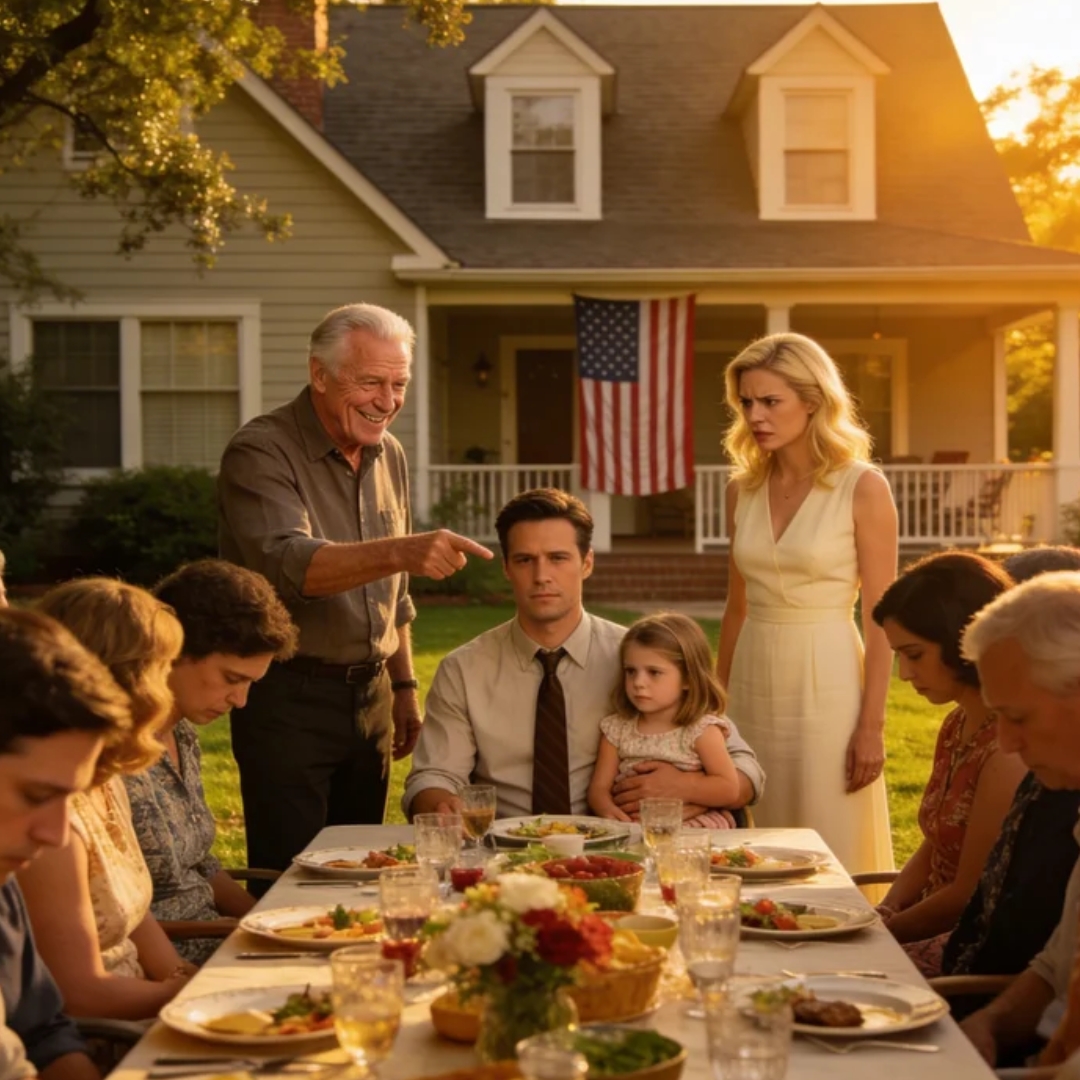 There are sentences that pass through a room and vanish. There are other sentences that stay suspended in the air like broken glass. This one did not fall. It glittered there, sharp and terrible, while every fork stopped halfway to every mouth. A mockingbird went quiet in the pecan tree. The Bluetooth speaker on the patio finished a country song and drifted into dead silence. My daughter, Lily, looked up at my husband with wide brown eyes and asked the only honest question anyone at that table seemed capable of asking.