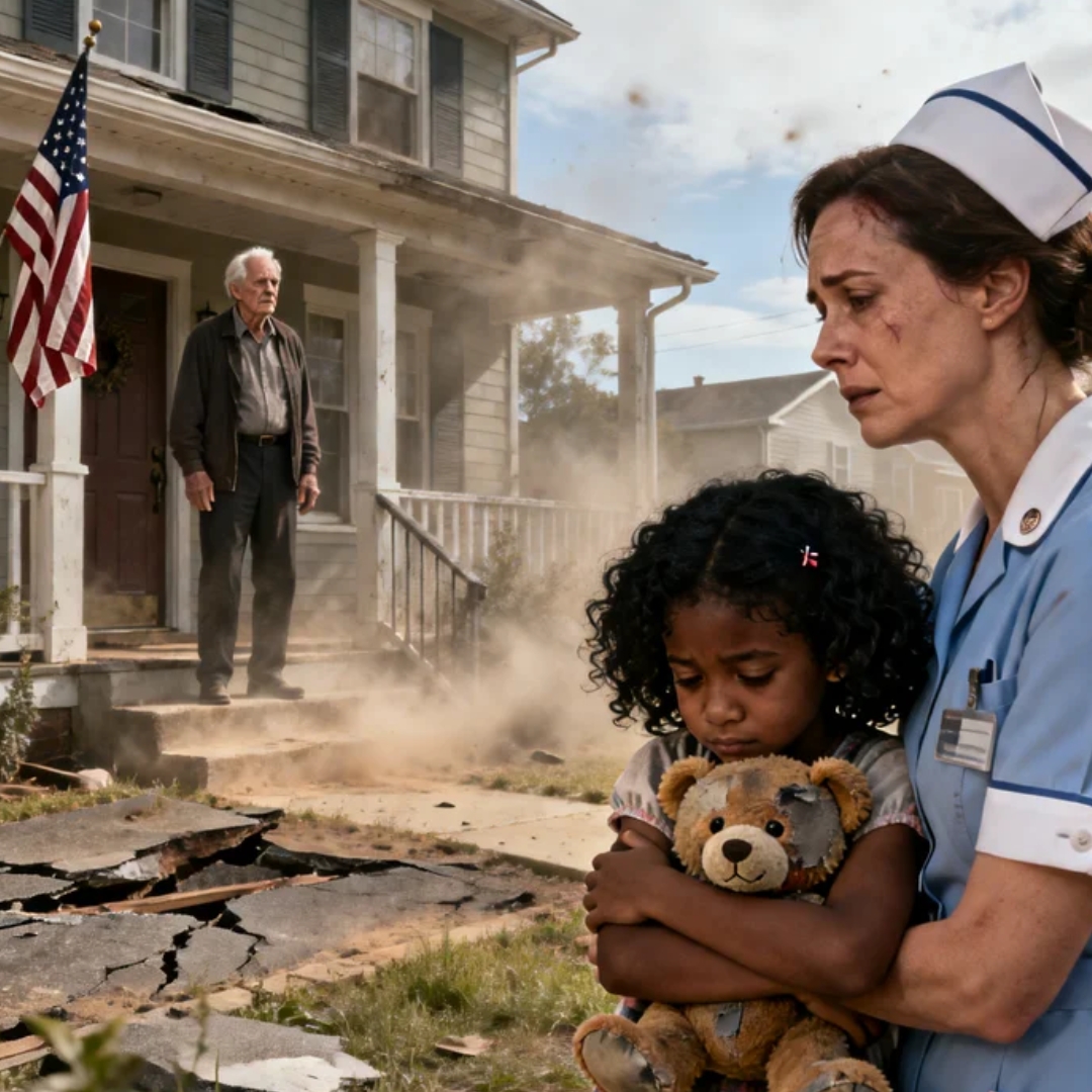She was wearing pink leggings with one knee scuffed white from preschool, and she had a streak of drywall dust in her hair from where our apartment ceiling had cracked. Her stuffed bear—Biscuit, bald along one ear from years of love—was tucked under her chin the way other children hold a security blanket. She wasn’t crying. That made it worse. She was simply looking at my father’s front porch as though trying to solve a puzzle no child should ever have to solve.
