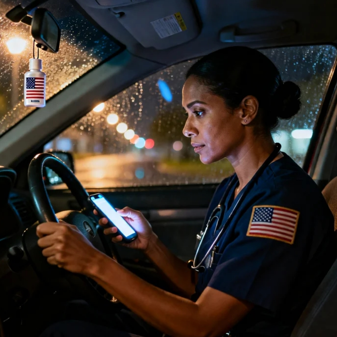 My fingers tightened around the steering wheel until the leather creaked. Outside the windshield, the hospital parking lot in suburban Ohio blurred into a smear of sodium lights and wet pavement. My scrubs still carried that sharp, chemical-clean scent of bleach and panic—the kind that never really washes out, even when you do. Fourteen hours in the ER, and now this.