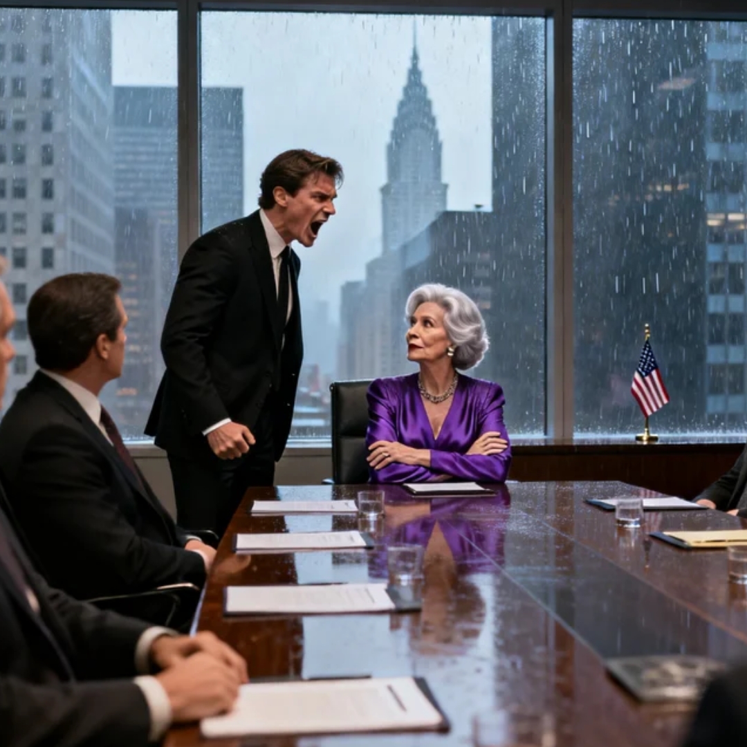 The rain outside streaked down the floor-to-ceiling windows like the city itself was crying. Far below, the traffic on Fifth Avenue crawled through Manhattan in a gray, impatient line. Inside my glass tower—my tower—every man in a suit suddenly found something fascinating to stare at: the leather folders, the polished table, their own manicured hands.