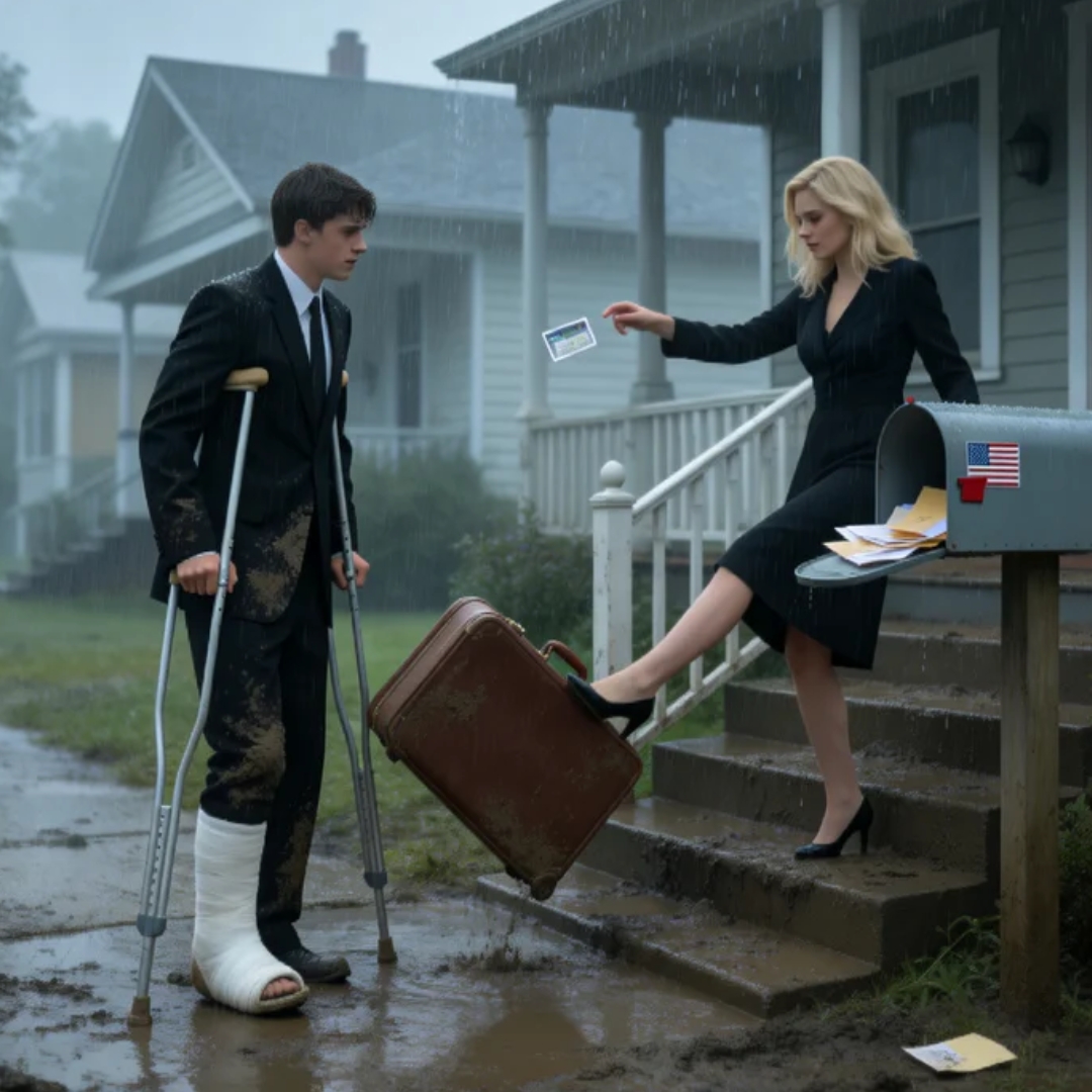 I stood on my crutches, my right leg locked in a heavy cast that still smelled like hospital plaster and antiseptic. Three days ago, I’d been in a wheelchair signing paperwork no child should ever sign. Three days ago, the world still had my mother’s voice in it.