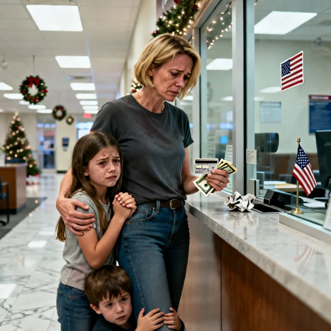 I stood at a bank counter in suburban Ohio on Christmas Eve with my two children clinging to me like they were the only proof I was still alive. Outside, the streets glowed with perfect holiday lights. Inside, the building smelled like disinfectant and money and silence.
