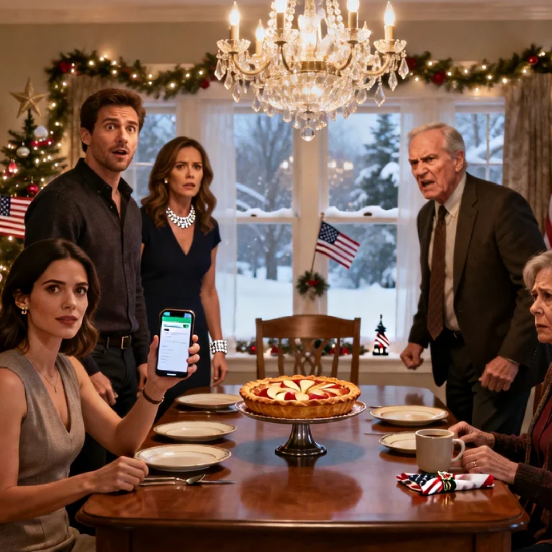 Mom had just set her famous apple pie in the middle of the table, steam lifting off the lattice crust in slow curls, cinnamon and butter drifting through the air like a spell. The chandelier above us threw warm light onto crystal glasses and polished silverware, the kind of dining room that looks like it belongs in a glossy catalog—except the people inside it were always a little colder than the décor.