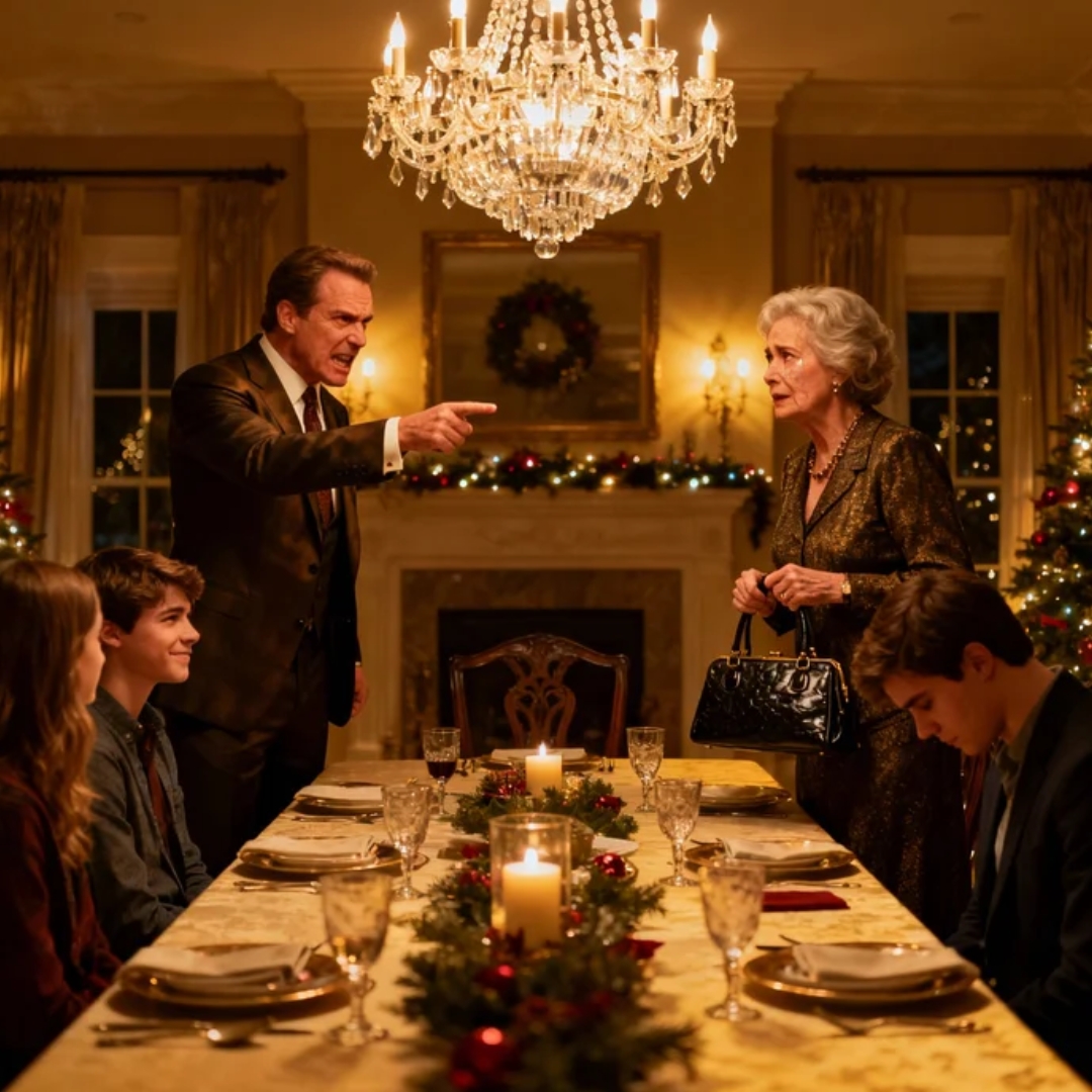 The house loomed exactly as it always had—three stories of brick and glass in an affluent suburb just outside Chicago, the kind of neighborhood where judges, senior partners, and CEOs lived behind manicured hedges and unspoken rules. The American flag on the porch snapped sharply in the December wind. Inside, warm light spilled through tall windows, promising comfort it never truly delivered to me.