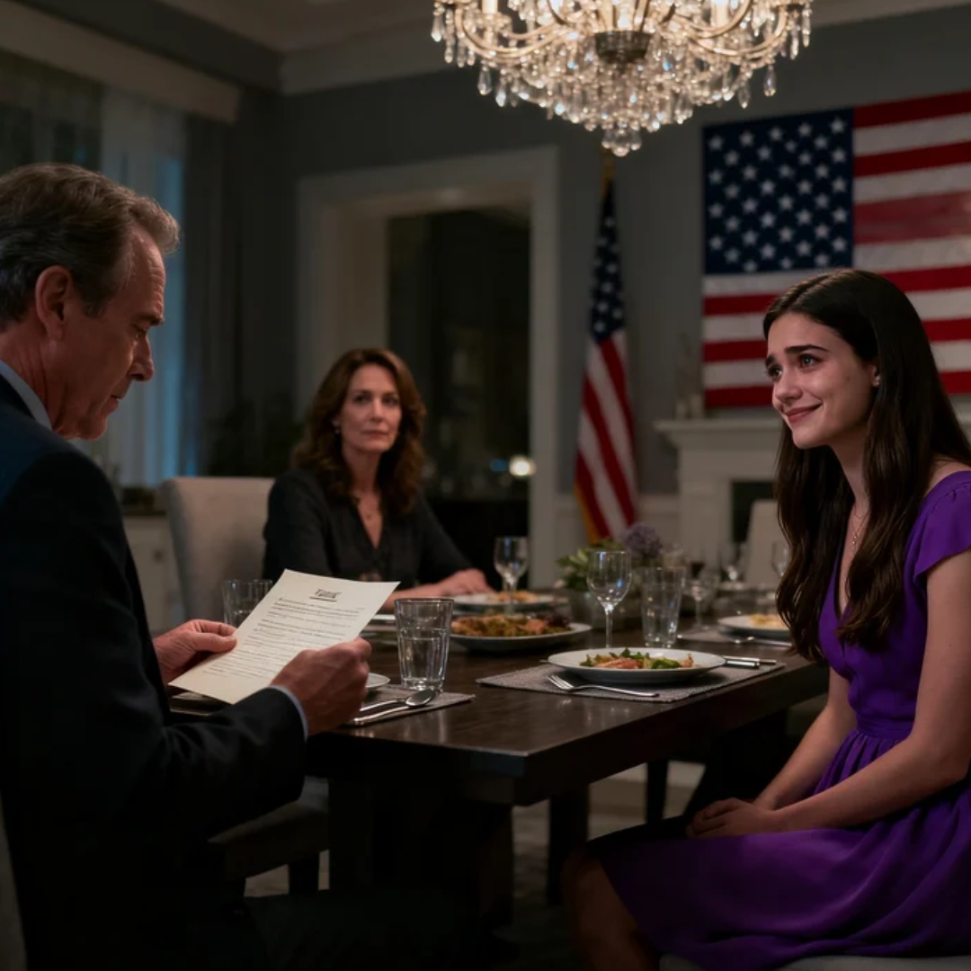 It began with crystal glasses, lemon chicken, my mother’s best serving dish, and the kind of family dinner Americans still pretend means safety. It began with my mother clearing her throat as though she were about to toast a graduation or an engagement, while outside the windows the streetlamps washed the cul-de-sac in that soft gold light that makes even ugly truths look expensive.
