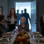 The cranberry sauce didn’t fall so much as surrender. One second it was balanced in Amber’s manicured fingers—ruby-dark, glossy, perfectly…