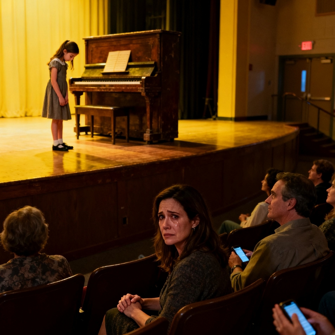One second the last note was still trembling in the air—thin, brave, unfinished like a prayer—and the next, the auditorium went dead the way a room does when people decide you don’t deserve warmth. No claps. No polite little “aw.” Not even the lazy applause adults give because they feel guilty for being bored.