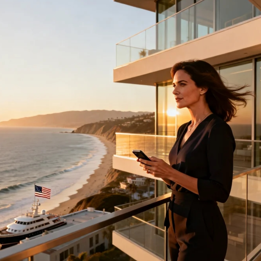 Not literally—though the way the light fractured across the ballroom ceiling, splintering into a thousand sharp reflections, it might as well have. The Waterfront Club in Santa Monica glittered like something out of a glossy American lifestyle magazine: white orchids cascading over linen-draped tables, champagne towers stacked high enough to make a hedge fund manager nervous, and floor-to-ceiling windows revealing the black velvet sweep of the Pacific beyond.