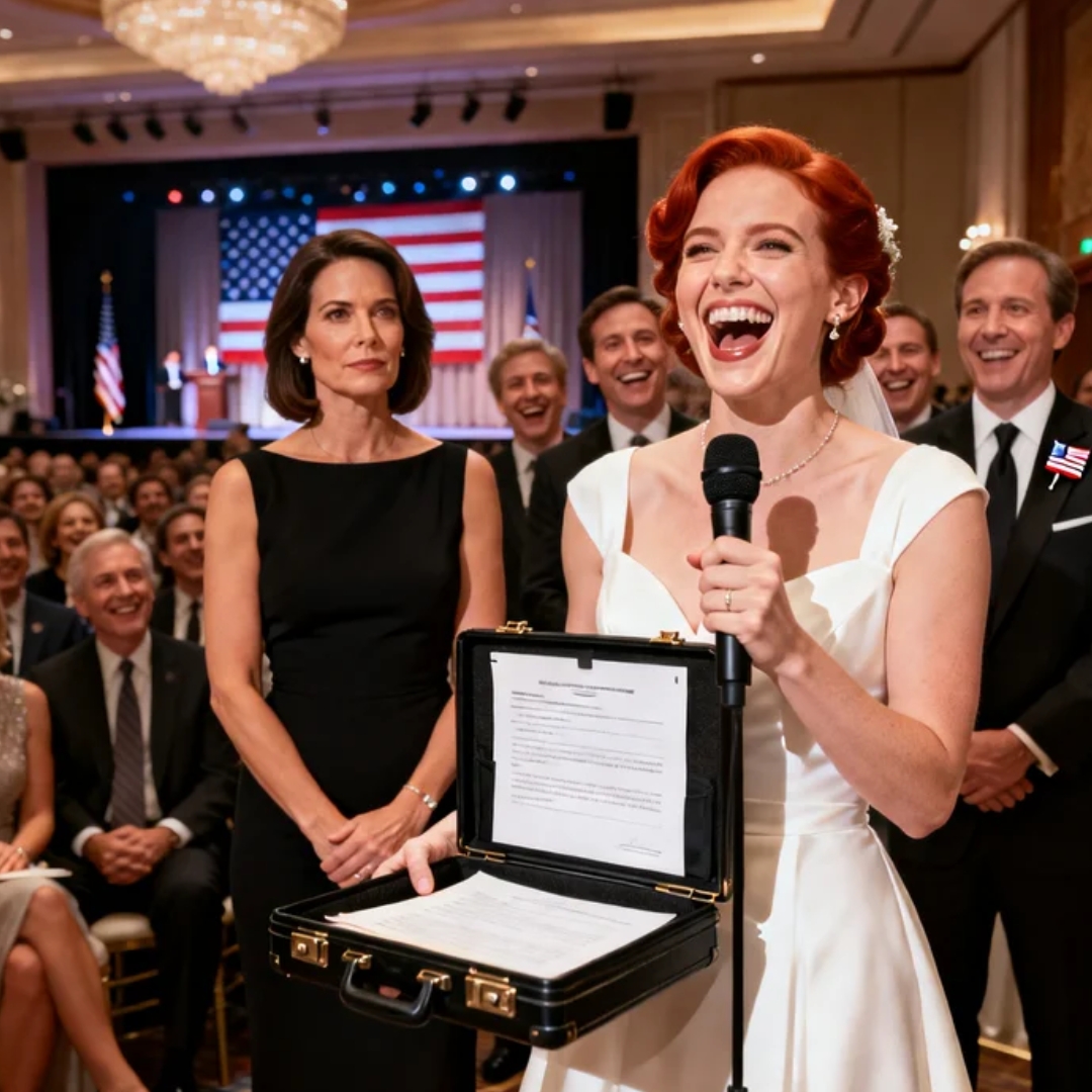 She drew it out slowly in front of 180 guests, eyes scanning the address the way she scans a menu she’s already decided to hate. Then she laughed—head tipped back, microphone inches from her mouth—so the sound traveled clean and bright across the ballroom like a champagne pop.