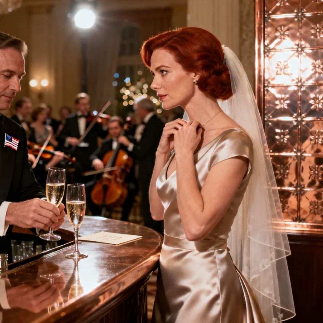 The copper behind the bar was so perfectly polished it held the room like a second reality—warm light, soft laughter, the blur of tuxedos and silk—until it caught a detail the real world was trying to hide.