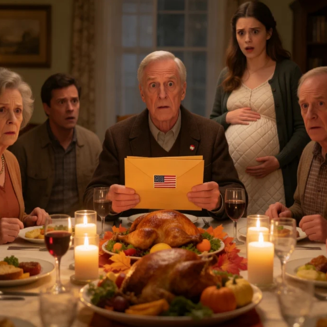 I simply walked to the table, placed the pie down with quiet care, reached into my coat pocket, and set a thick envelope on my father’s plate.