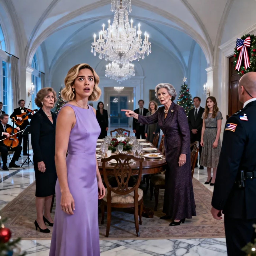The chandelier in my grandmother’s ballroom didn’t glitter like holiday décor—it flashed like a lie detector, scattering hard white light over silk gowns, crystal flutes, and the kind of family smiles that only exist when money is watching.