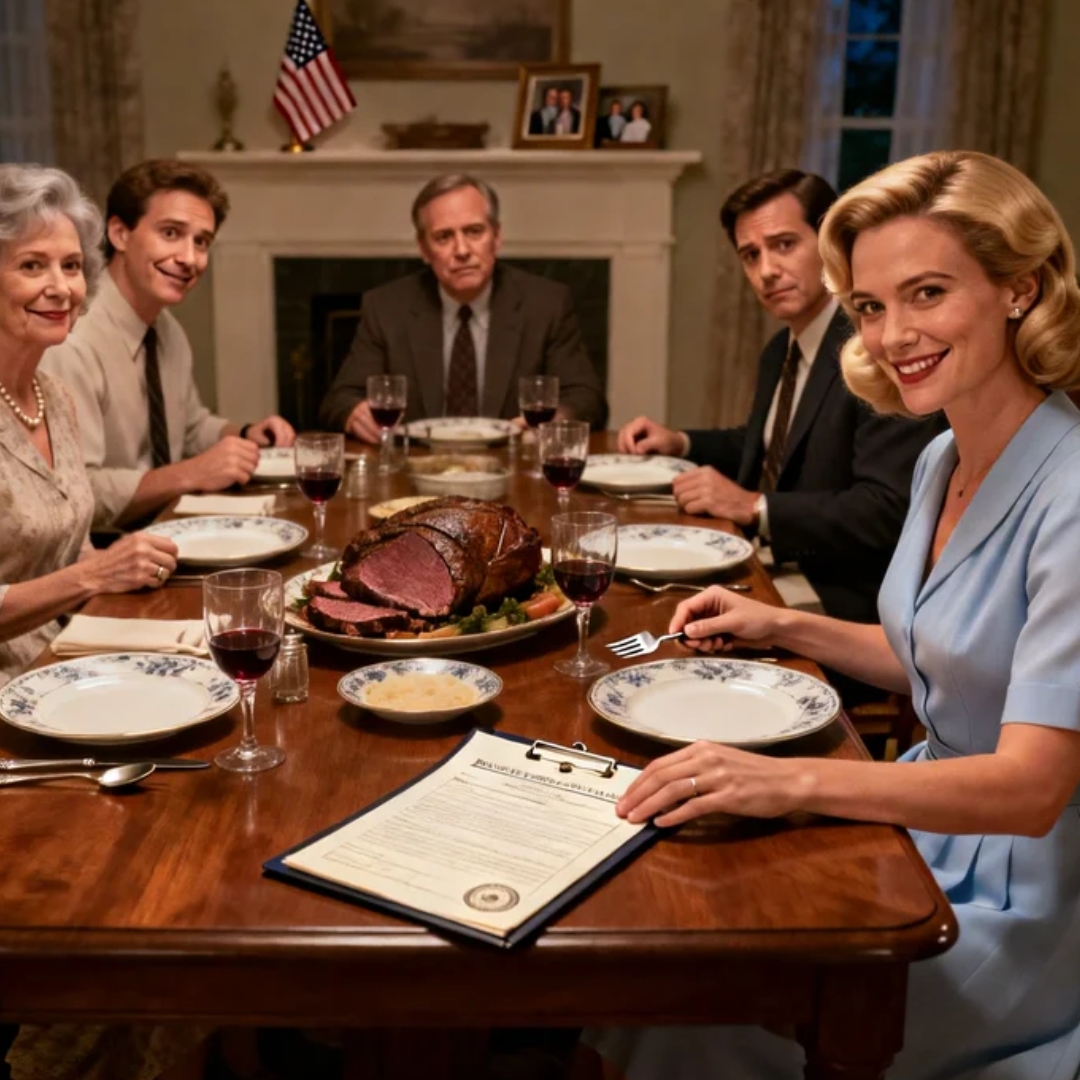 Elaine floated around the dining room like she was hosting a royal banquet, adjusting napkins that didn’t need adjusting, smoothing wrinkles that weren’t there. The roast sat in the center like a centerpiece at a magazine shoot. My father poured wine like a man who believed the right amount of alcohol could keep a family from cracking.