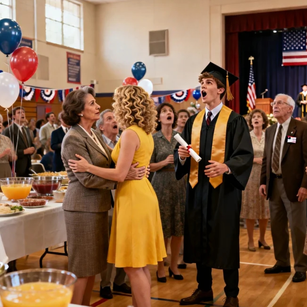 The community center smelled like chicken parmesan, cheap cologne, and a thousand small resentments dressed up as celebration. Somewhere near the folding stage, a Bluetooth speaker was trying its best with a playlist labeled “GRAD PARTY BANGERS!!!” and failing heroically.
