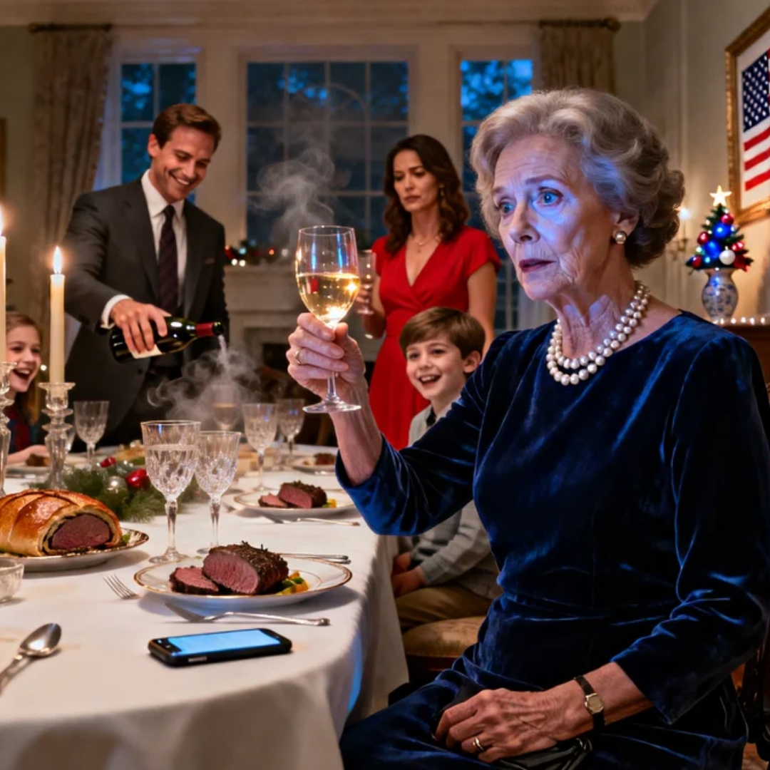The crystal wineglass quivered in my hand, the thin stem vibrating as if it could sense what my heart hadn’t caught up to yet. Candlelight skated across the bowl of the glass and fractured into gold flecks, glittering over a table so extravagant it looked staged for a magazine spread—snow-white linen, silver so polished it threw back reflections, plates edged in gold, sprigs of rosemary tucked beside each place setting like a promise of tradition.