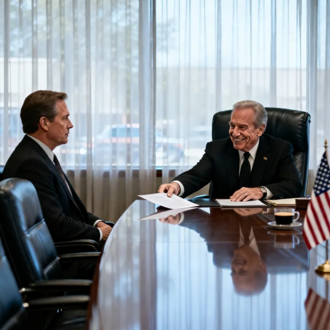 He was too busy arranging his papers like props, the way executives do when they want the room to feel smaller and the person across from them to feel… manageable. The fake leather chairs smelled like hot plastic and old money. The coffee on the sideboard had been burned so long it tasted like punishment. Outside the tinted windows, suburban Detroit moved like it always did—traffic on Telegraph Road, the distant rumble of trucks feeding the auto corridor, the Midwest pretending it wasn’t built on sweat.