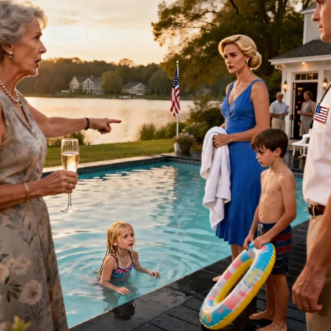 “Out,” she snapped, voice slicing through the humid lakeside air. “Get out of the pool. Right now.”