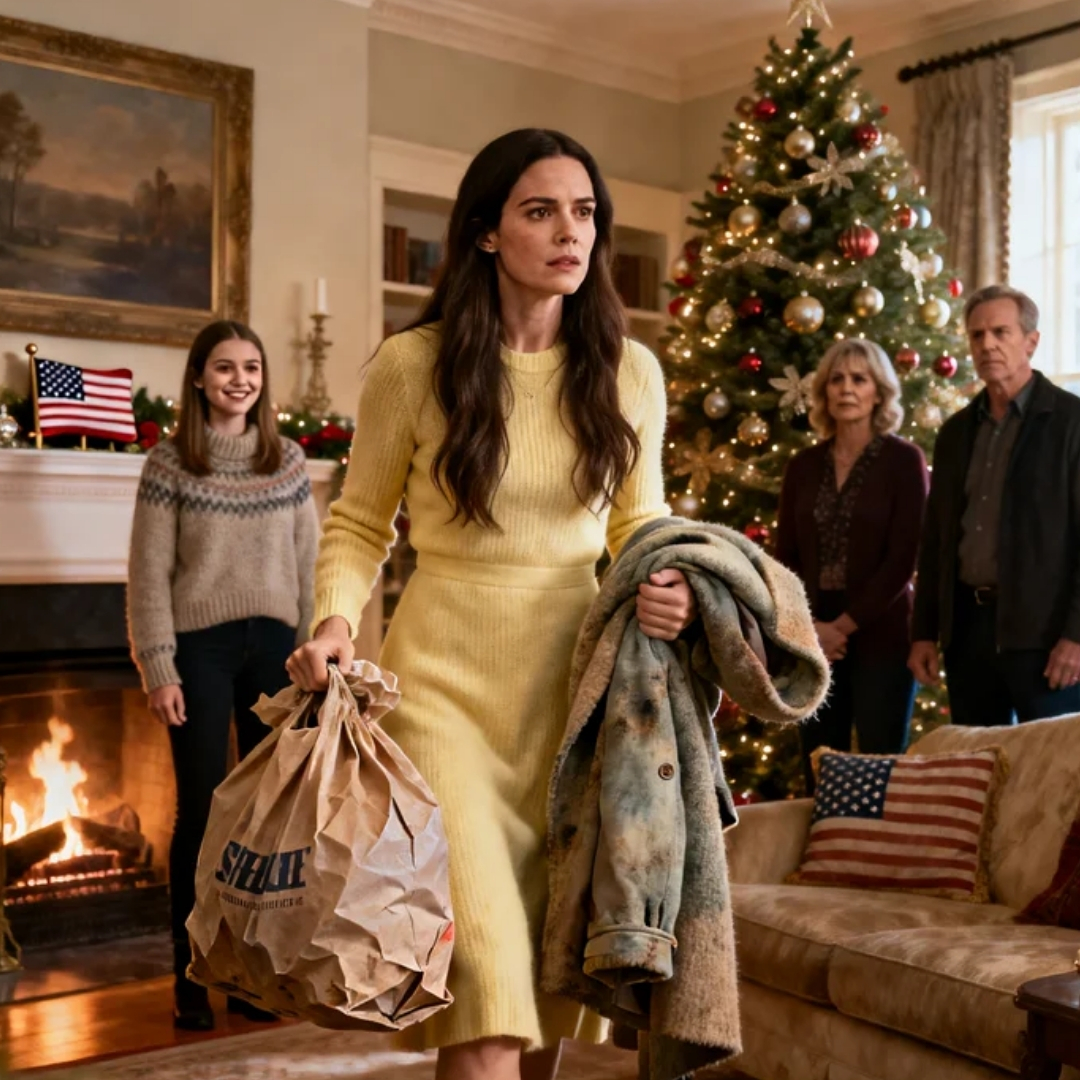 One moment, my mother was smiling like a department-store angel in a mansion-sized living room outside Palo Alto, the kind of California house where the Christmas tree has a designer and the ornaments have their own insurance policy. The next, the television above the fireplace snapped from carols to a red BREAKING banner—loud enough to cut through every polite insult that had been aimed at me all night.