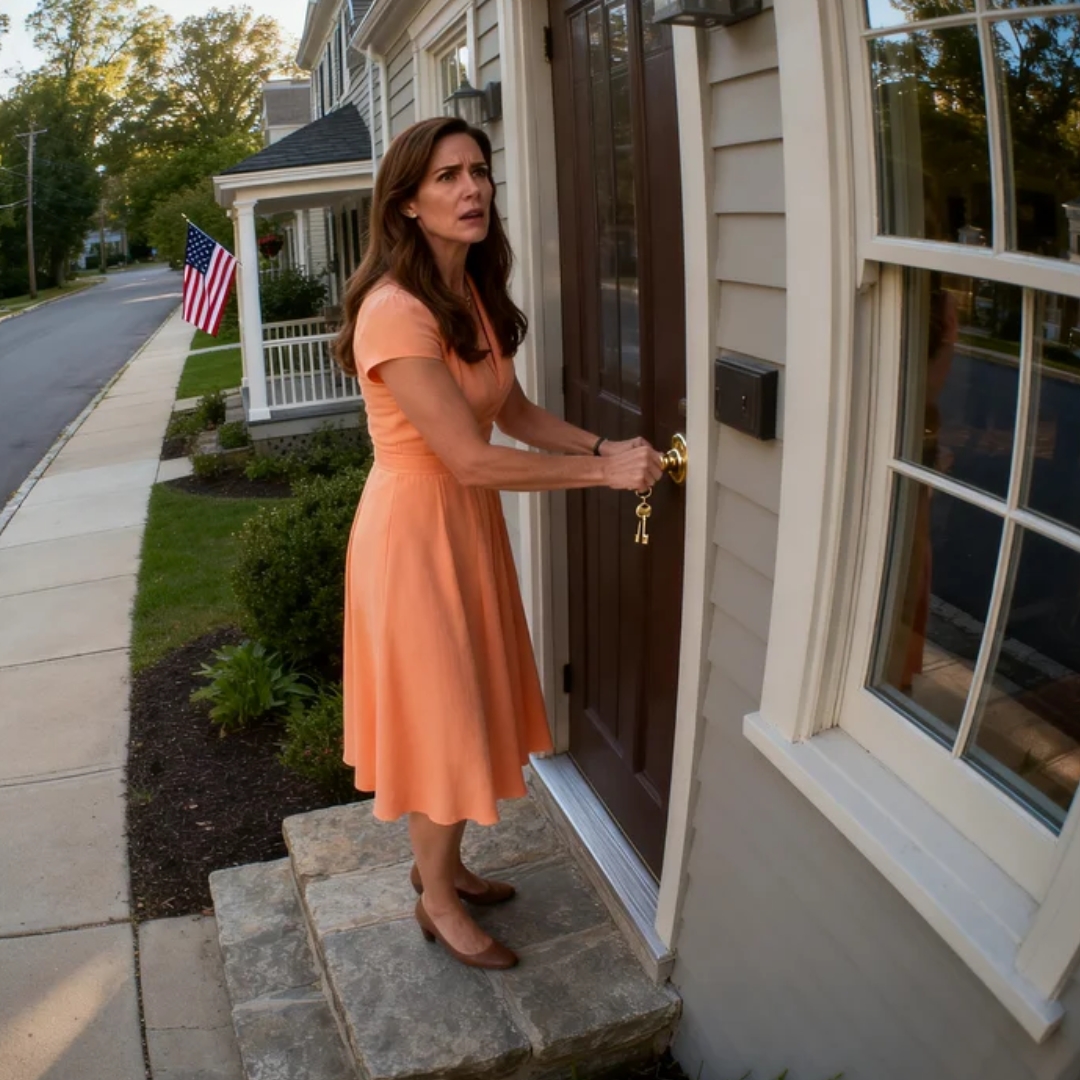 On the tablet balanced against her kitchen sugar bowl, the front-door camera showed everything in crisp morning light: Lauren on the wide stone steps of the Craftsman house on Elmwood Lane, one hand gripping the strap of her oversized leather tote, the other twisting a key that no longer belonged to any lock in that house. She tried once. Then harder. Then with the offended fury of a woman who believed the world had briefly forgotten who she was supposed to be.
