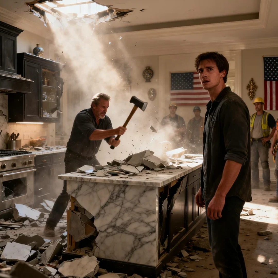 Dust hung thick in the air, suspended like the aftermath of an explosion. It coated the floor, the walls, the edges of things that no longer had clear shapes. The kitchen—the room he had spent two years planning, saving for, building piece by piece like a promise—was torn open.