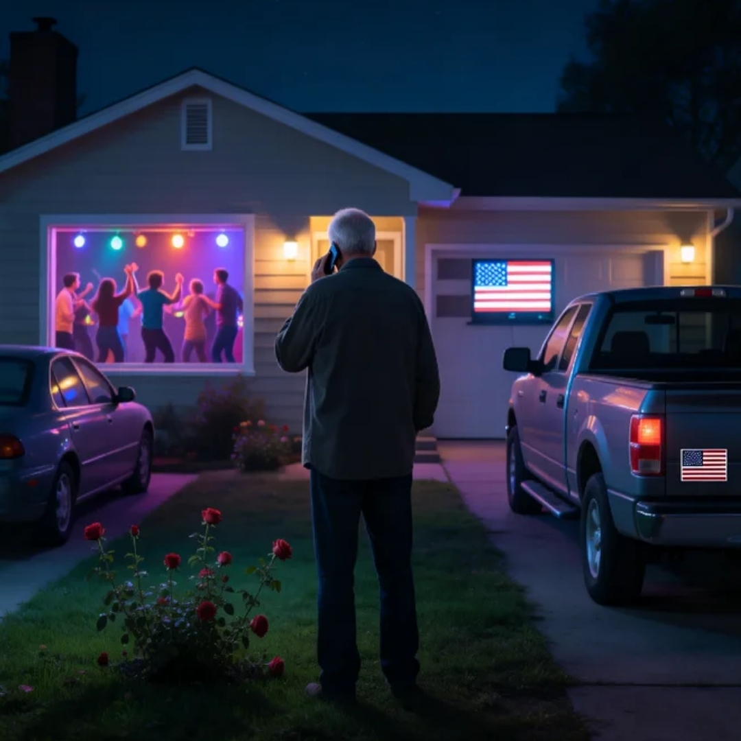 The porch light was blazing like an interrogation lamp, and my front window was pulsing with silhouettes—strangers dancing inside my living room as if the house had never belonged to anyone at all.