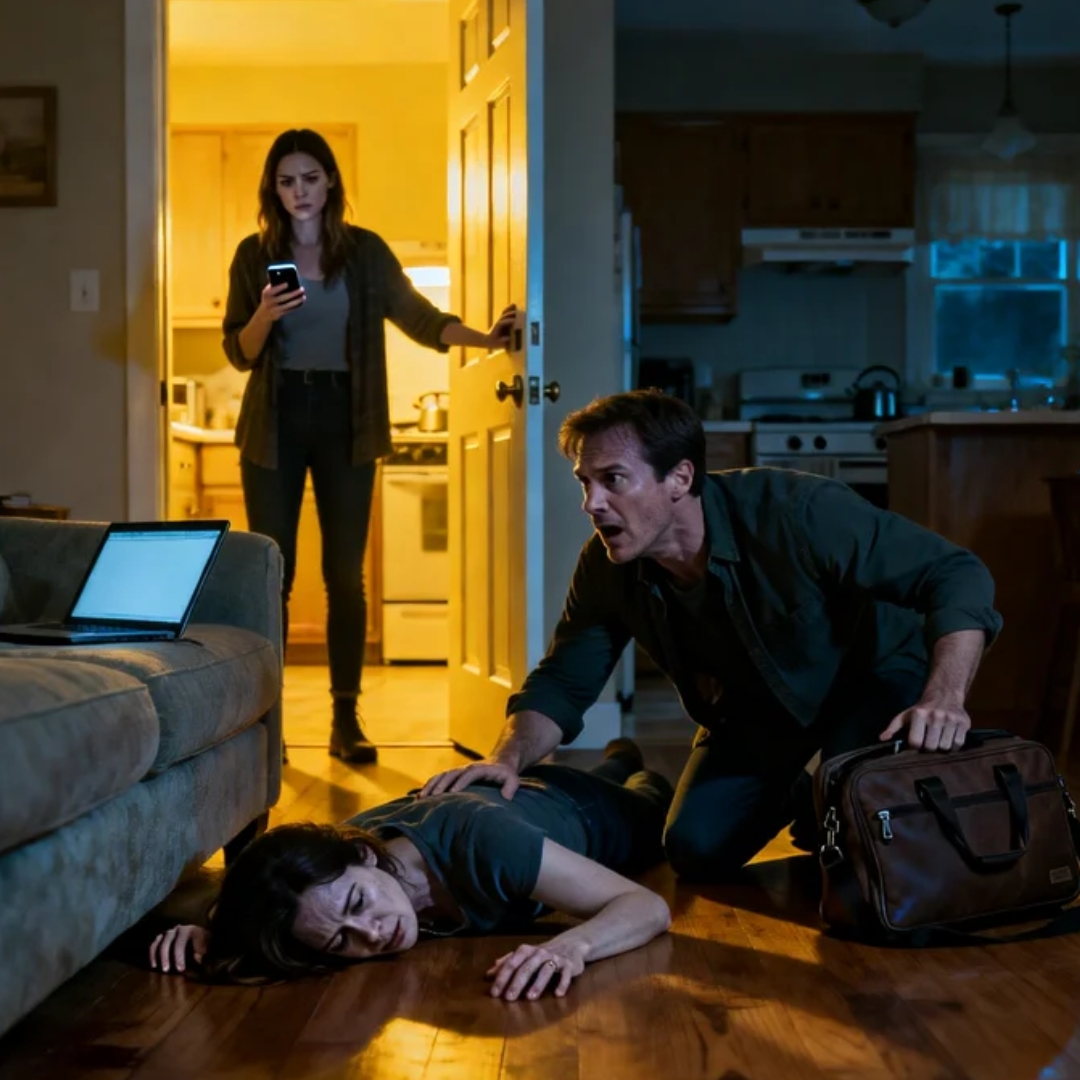 I dropped the laptop bag so hard it thumped once, heavy and stupid in the middle of all that terror, and I hit the floor beside Emily. Her skin was cold where I touched her jaw. Her pulse raced under my fingers, rapid and thin, like a trapped animal.