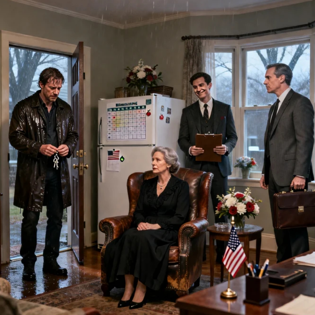 Ninety minutes later, my hands were still shaking when I turned the key in the front door of the house on Maple Drive. The porch light flickered. The wind shoved wet leaves against the steps. I expected silence. I expected grief. I expected that hollow, ringing emptiness that comes after a funeral when the world moves on and you’re the only one stuck inside the moment.