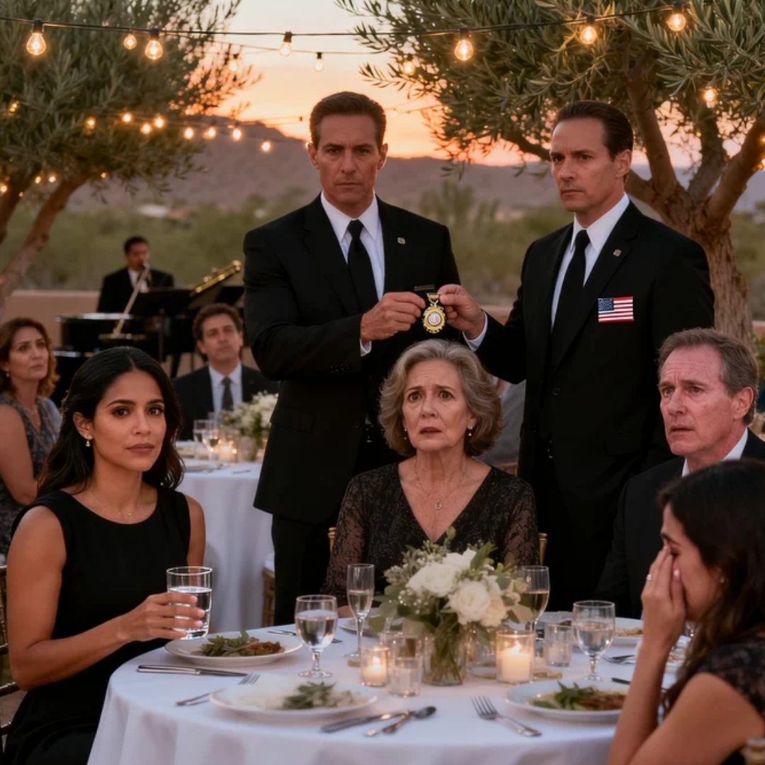 String lights trembled in the warm Arizona evening, draped across olive trees that had no business surviving the desert but did anyway, stubborn and curated, like everything else at Hacienda Grande. The jazz quartet near the fountain eased into a soft, honeyed melody. Laughter rose and fell across white tablecloths. Glasses clinked. A wedding—perfect, curated, expensive—unfolded exactly the way it was supposed to.