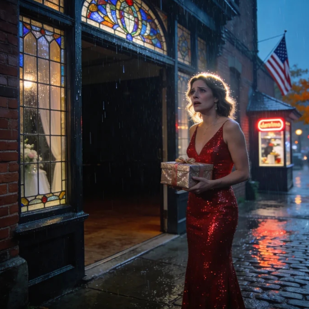 The wind off the Hudson River carried the cold bite of an early October storm, rattling the iron street lamps and scattering yellow leaves across the pavement. Inside the historic brick event venue behind the glass, the lights were off. No music. No guests. No wedding.