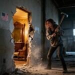 Her jacket was torn. Dark strands of hair clung to her face, matted with rain and blood. One arm hung awkwardly at her side, the wrist bent at an angle no wrist should ever bend.