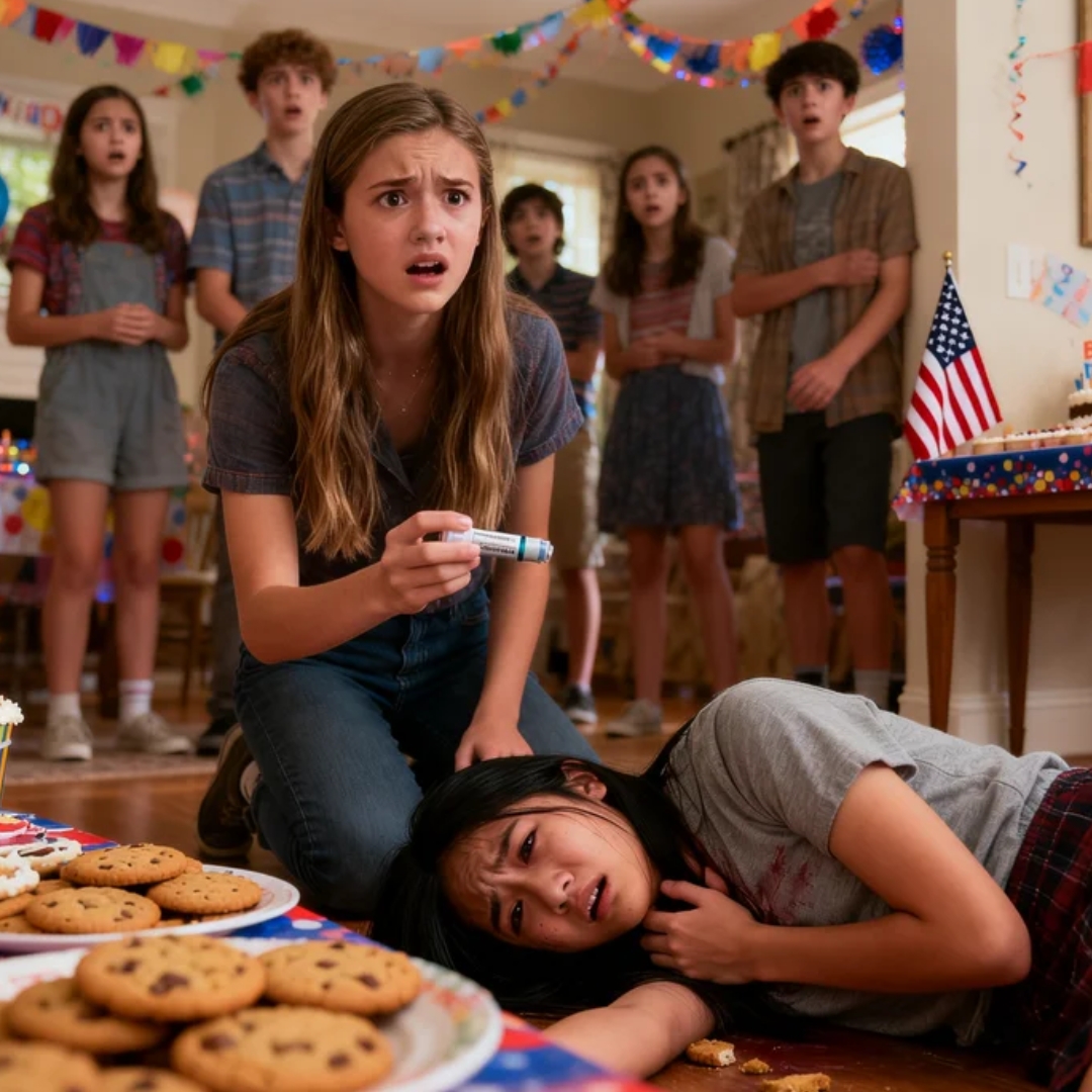 Her parents had transformed the backyard into a soft, glowing celebration. Fairy lights hung from the wooden fence. A playlist of pop songs drifted through outdoor speakers. Teenagers crowded around tables piled with cupcakes, cookies, and soda.