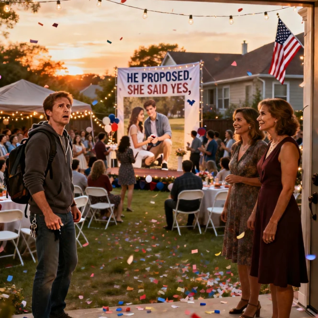 A hundred voices, maybe more, slammed into me at once. Applause. Whistles. Confetti. Someone’s phone camera flash popping like fireworks. I froze on the threshold, keys still in my hand, backpack strap digging into my shoulder, the door not even fully closed behind me.