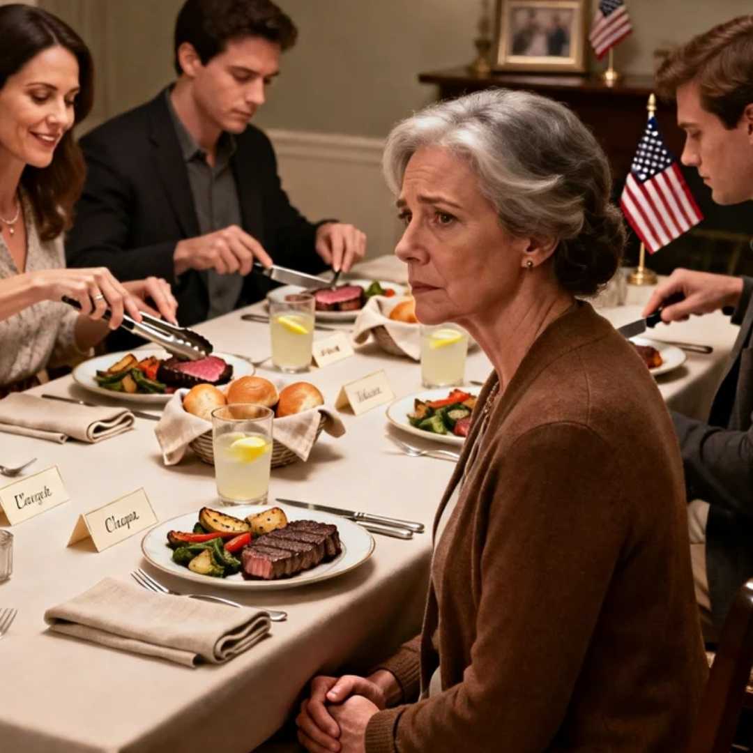 It was the empty space in front of my chair—white tablecloth, perfect place setting all around it, and then… nothing. No plate. No napkin folded like a swan. No water glass with a lemon slice catching the chandelier light. Just a clean, deliberate blank, like someone had erased me from the picture.