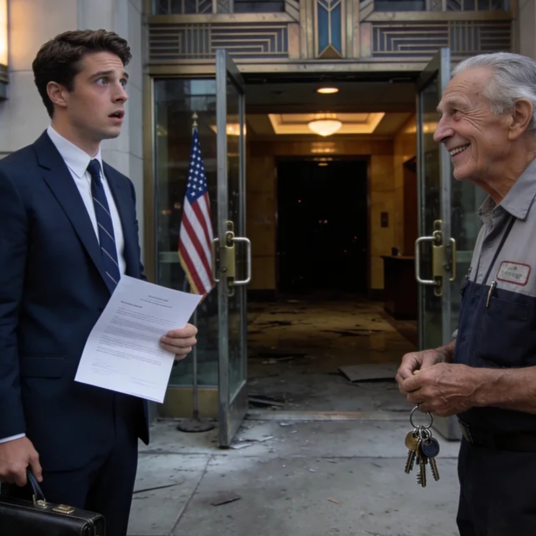 He wore a gray janitor’s uniform and had white hair that caught the morning light like silver thread.